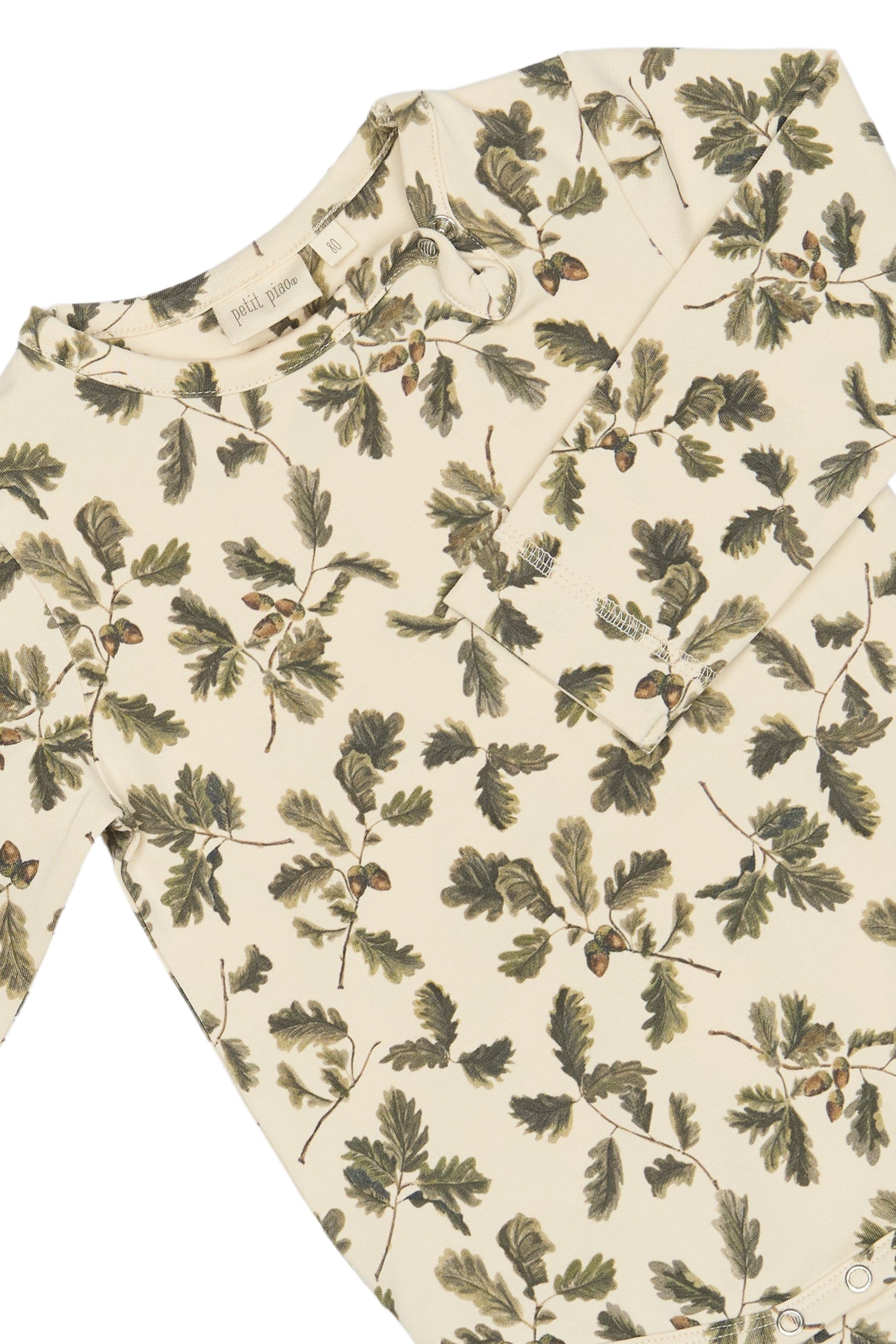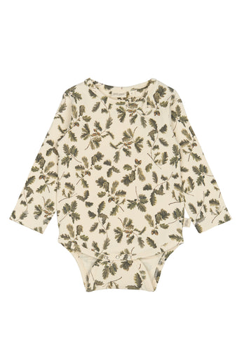 Petit Piao - Skøn body med egeblade, offwhite/grøn