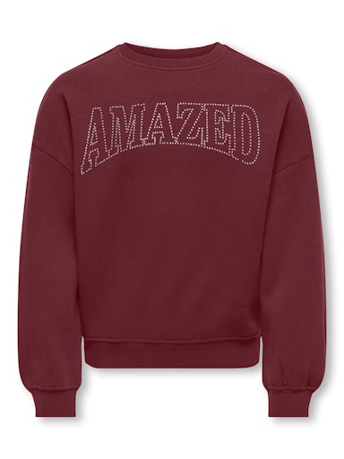 Dieses rote Sweatshirt in der Farbe Cabernet ist lässig und bequem zugleich. Die Vorderseite ist mit funkelnden Strasssteinen verziert, die zusammen das Wort „Amazed“ bilden – ein verspieltes und zugleich stilvolles Detail. Das Sweatshirt ist aus weichster Baumwolle gefertigt und sorgt so für Wärme und Komfort den ganzen Tag. Wenn dein Tag etwas mehr Glanz vertragen könnte, peppe ihn mit diesem wunderschönen Sweatshirt auf.