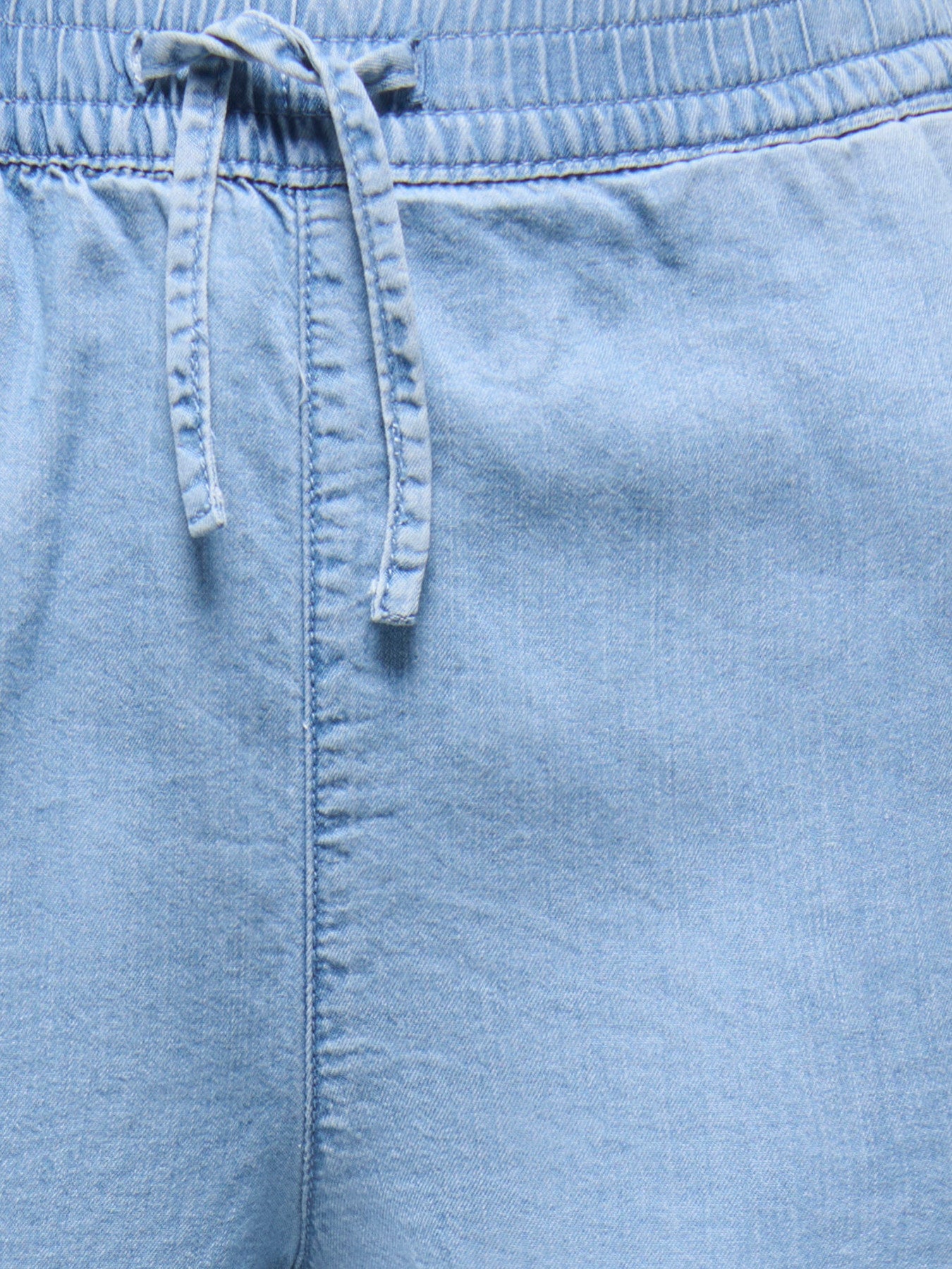 Bequeme Jeansshorts in mittelblauer Waschung. Das Modell hat einen elastischen Bund mit Kordelzug für eine flexible Passform sowie praktische Vordertaschen. Sie eignen sich perfekt für wärmere Tage, den Urlaub oder einfach für den Alltag und lassen sich vielseitig kombinieren – von einem süßen Sommertop bis hin zu einer etwas wärmeren Strickjacke.