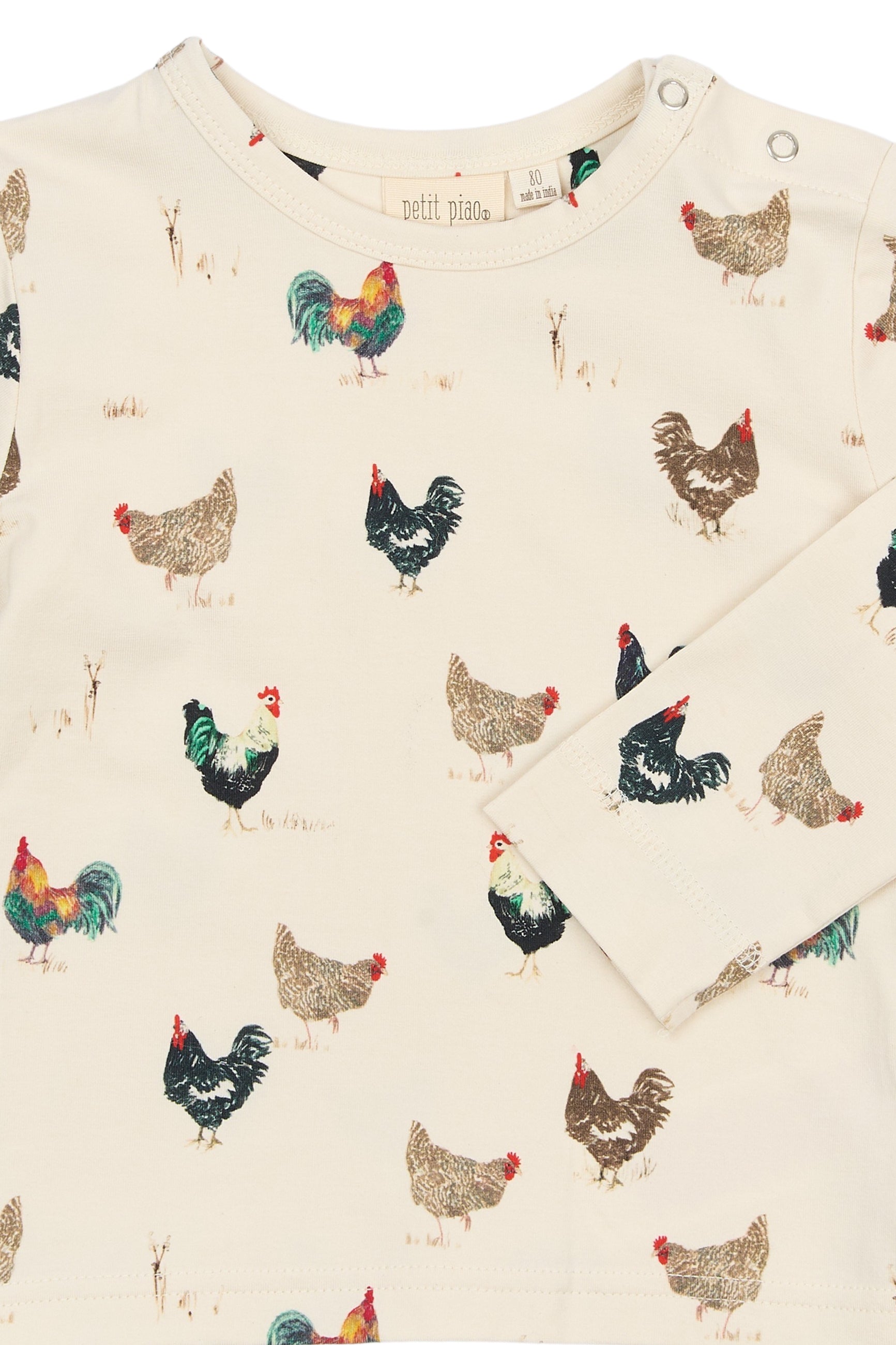 Petit Piao - PPStar - Langarmshirt mit Hühnern (Bio), beige
