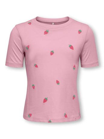 Only Mini - KmgBeate - T-Shirt mit Erdbeeren, rosa