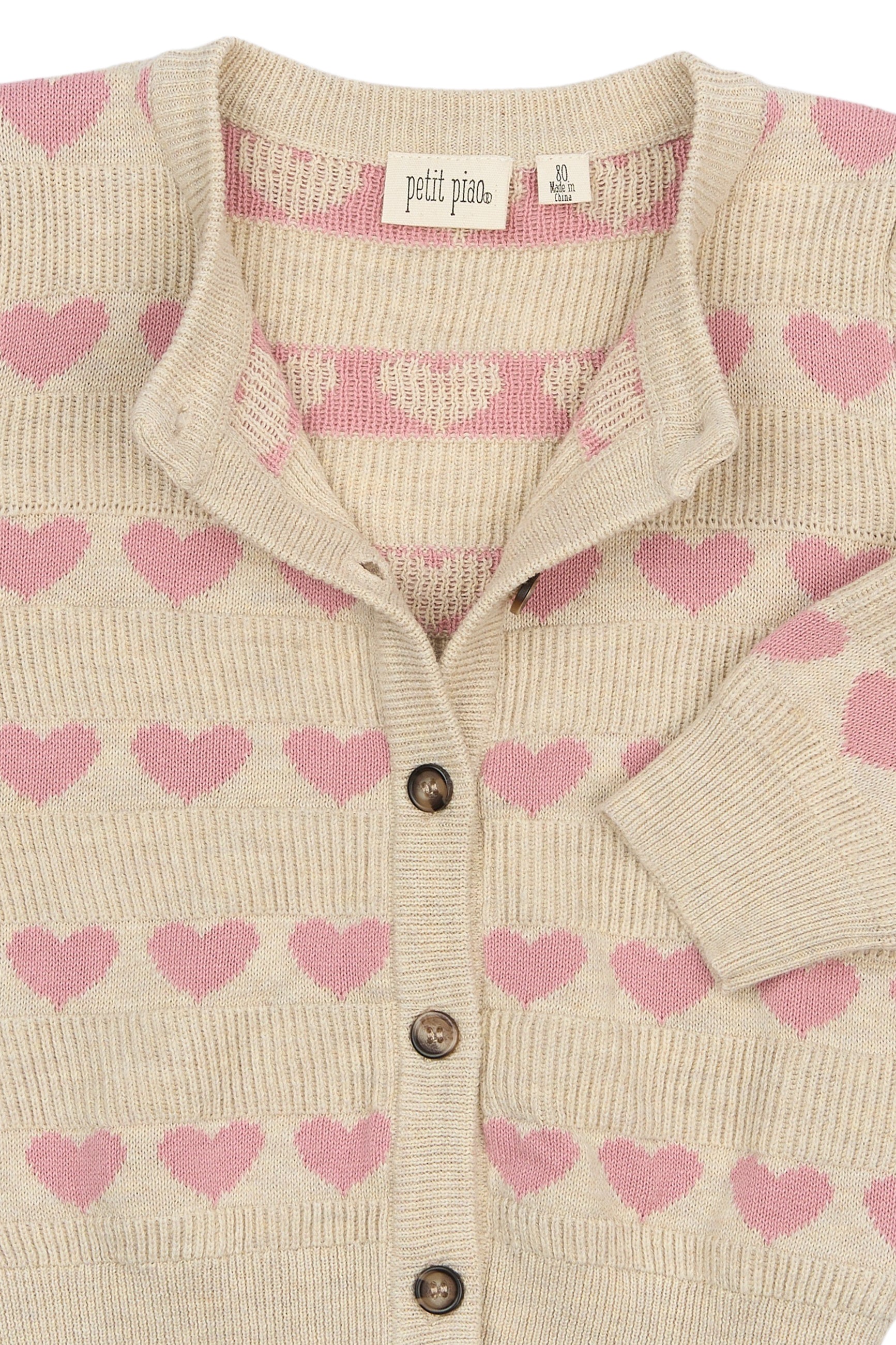 Petit Piao - PPElia - Cardigan med hjerter, beige